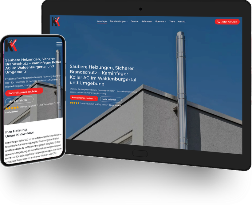 Internetauftritt für Kaminfeger-Firma. Vorstellung der Dienstleistungen und Downloads für Kunden.